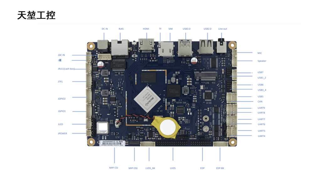 基于RK3568,四核A55,最大主频2.0GHz 板载 LPDDR4/4X内存 板载eMMC存储颗粒 板载WIFI+BT芯片 支持4G/5G扩展 支持HDMI/LVDS/eDP/MIPI显示接口 支持MIPI CSI摄像头接口 提供9个USB,6个 COM 支持10/100/1000M 以太网 支持网络唤醒、看门狗、定时开关机; 支持Linux 安卓 11
